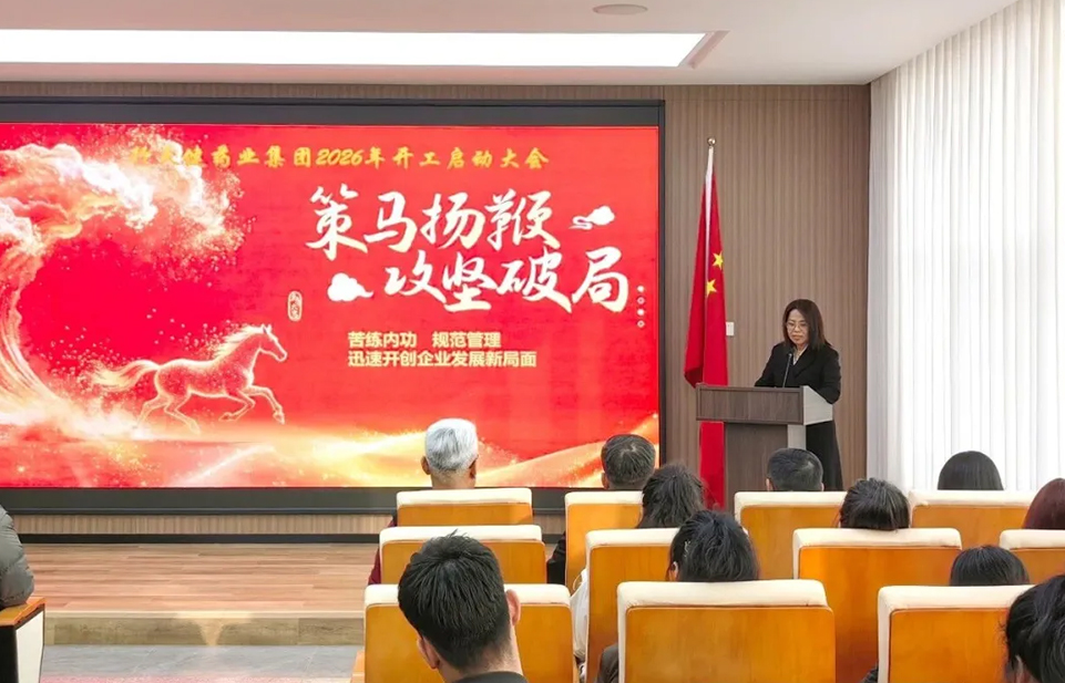 2月24日下午3时,行天健药业集团有限公司隆重召开全体员工大会。本次会议以“策马扬鞭·攻坚破局”为主题,由集团常务副总经理秦培红主持,集团总经理出席会议并作战略部署讲话。会议旨在深度传达董事长新春致辞精神,全面吹响2026年集团攻坚克难的冲锋号角,为新一年的高质量发展谋篇布局。