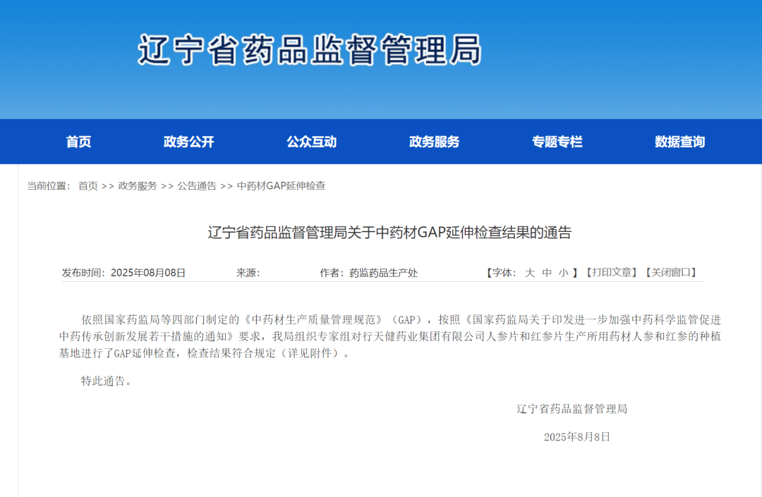 喜报!行天健药业集团人参、红参通过《中药材生产质量管理规范》(GAP)认证